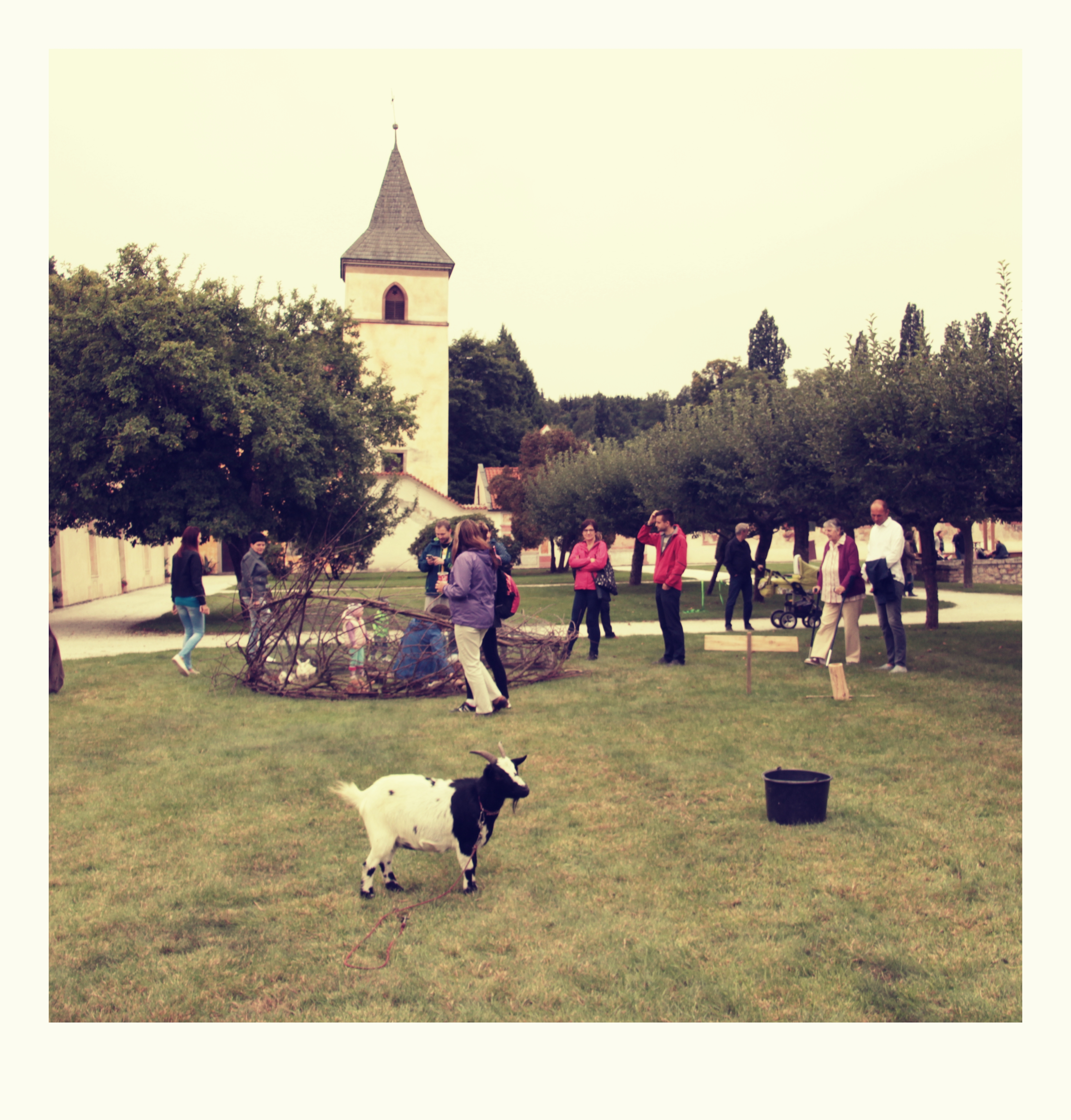 V zahradě potkáte pávy, labutě, ale i kozy, ovečky a možná i králíky.